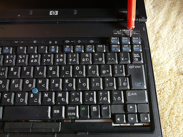 本体キーボード面を上において、キーボードの隅を精密ドライバーのマイナスなどで持ち上げて取り外します。