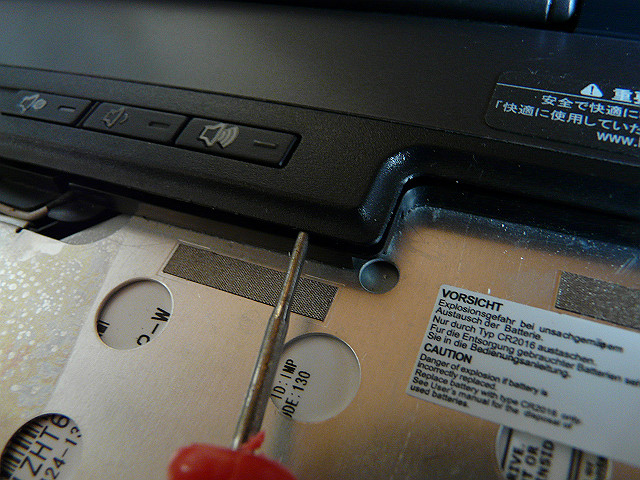 ここでは、タッチパッドと本体のはめ込み部分に細いマイナスドライバーを差し込みこじって外しました。