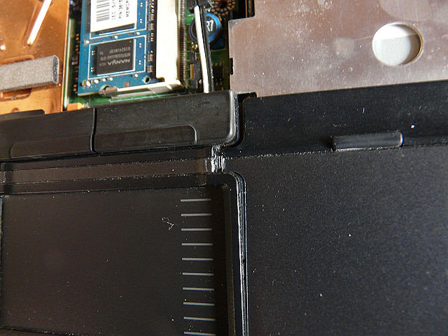 タッチパッドは本体にはめ込まれ爪で固定されているだけですので、力ずくで外すことができます。