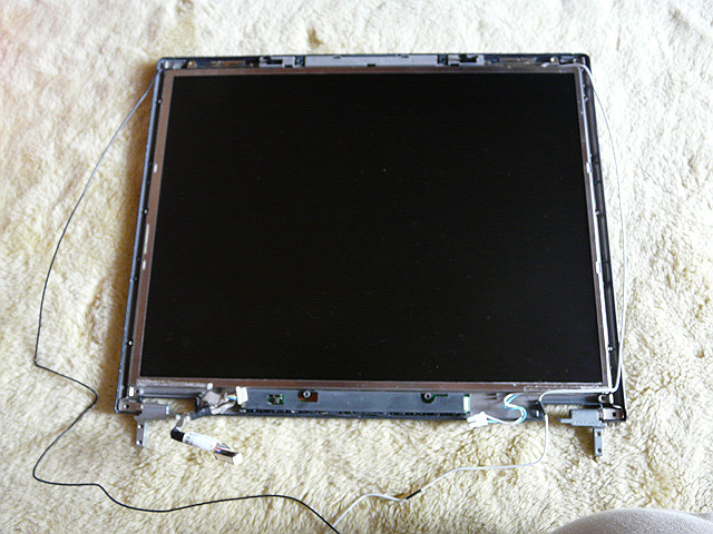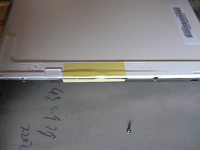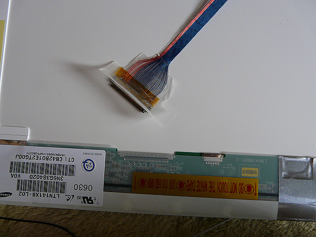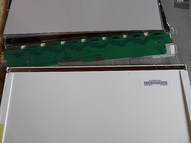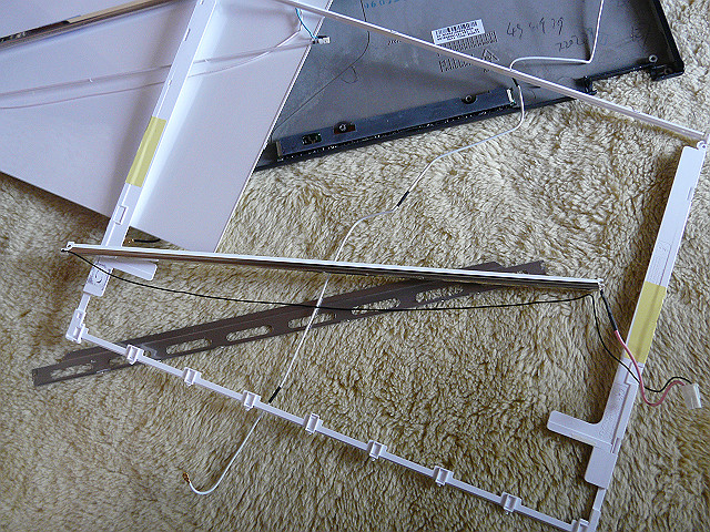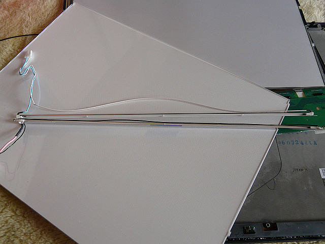 パネル裏面には、液晶表示の信号ケーブルがあり、その下に紙製の反射板があります。
