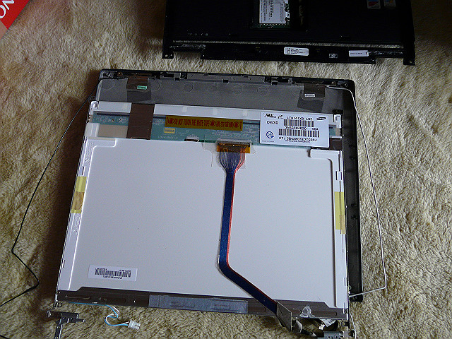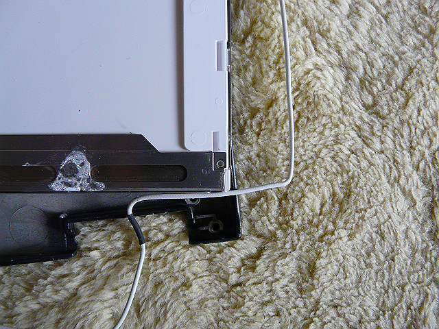 無線のアンテナ線は、液晶パネルまで伸びていますので、ここで外します。