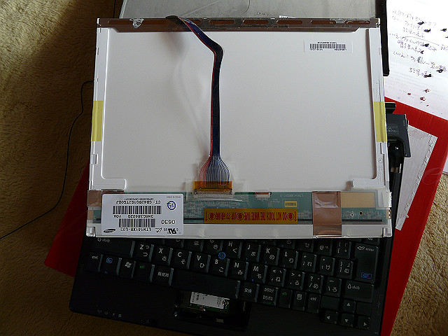 この時点ではキーボードのケーブルが本体に繋がったままなので、強くひっぱってはいけません。
