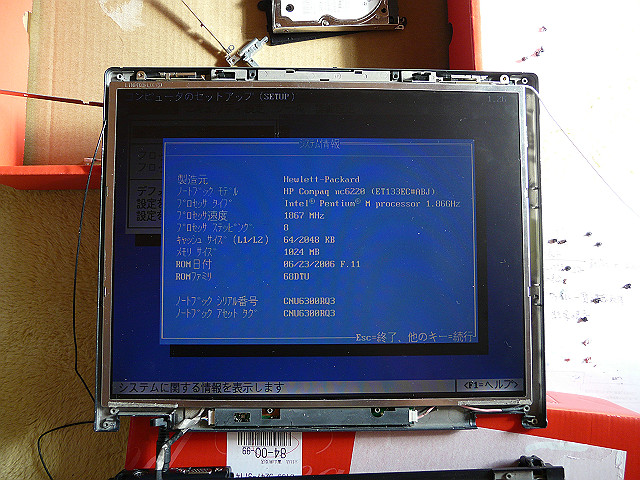 ヤフオクでバックライト不良のHp Compaq nc6220 を入手しました。