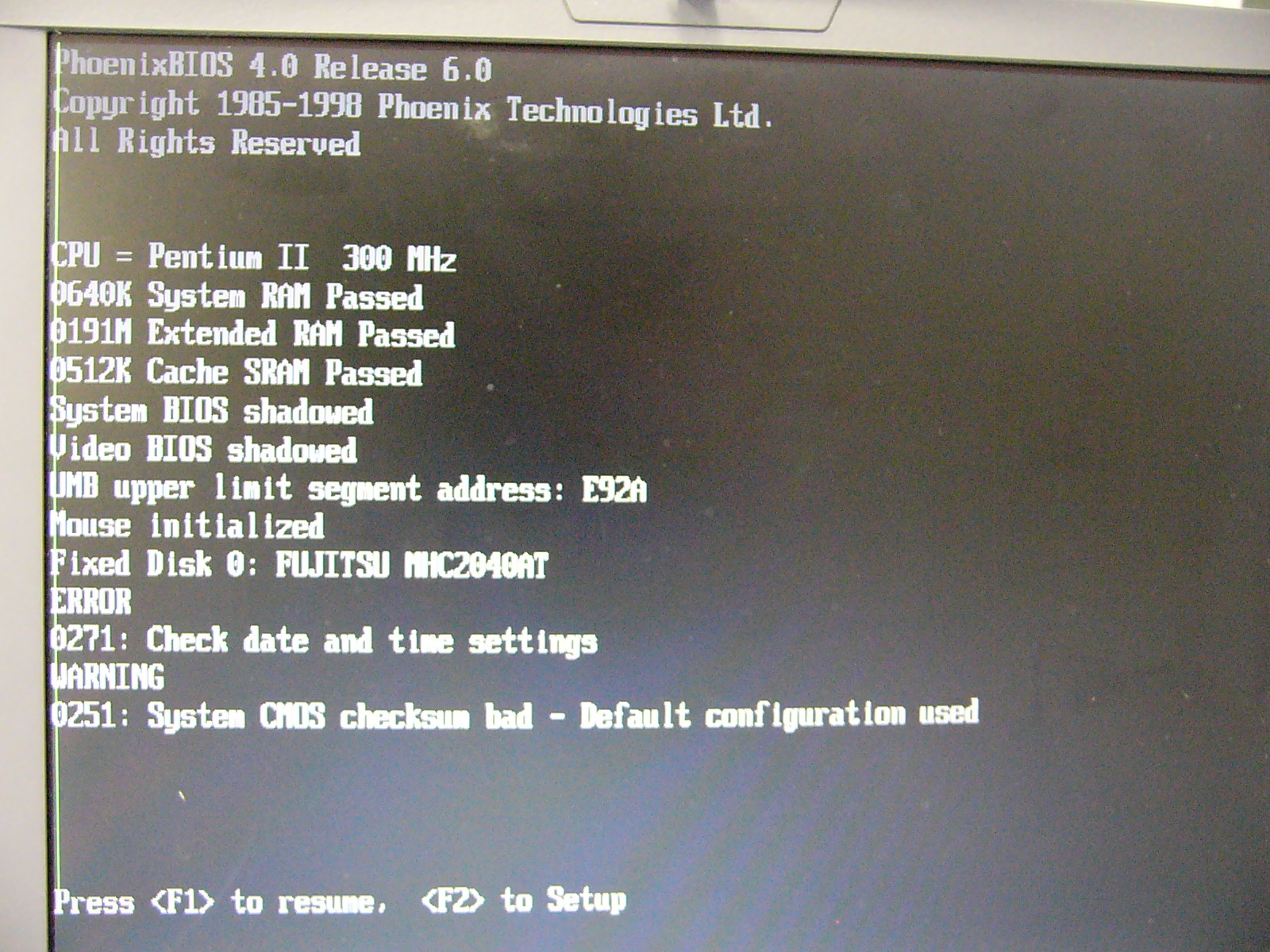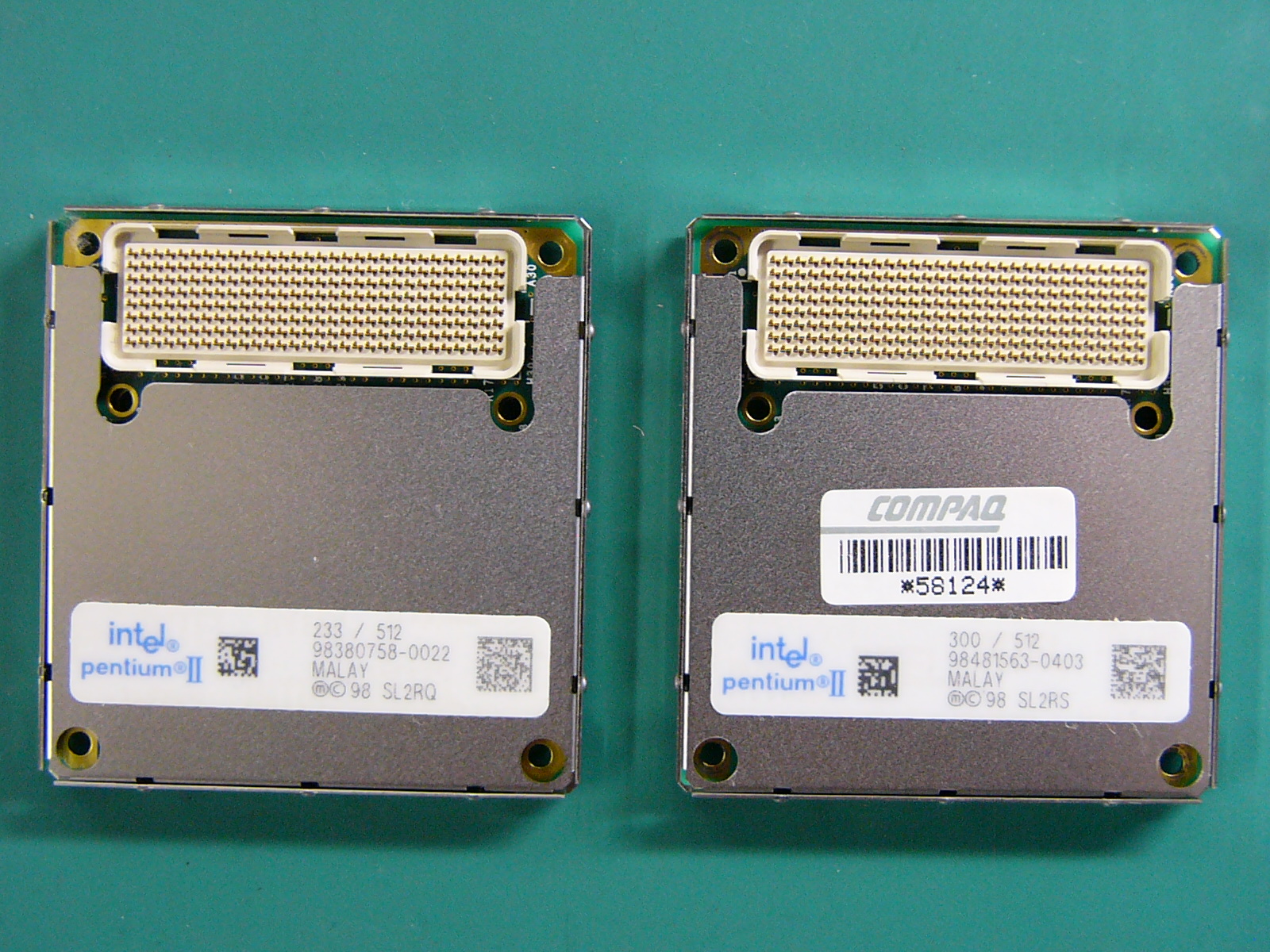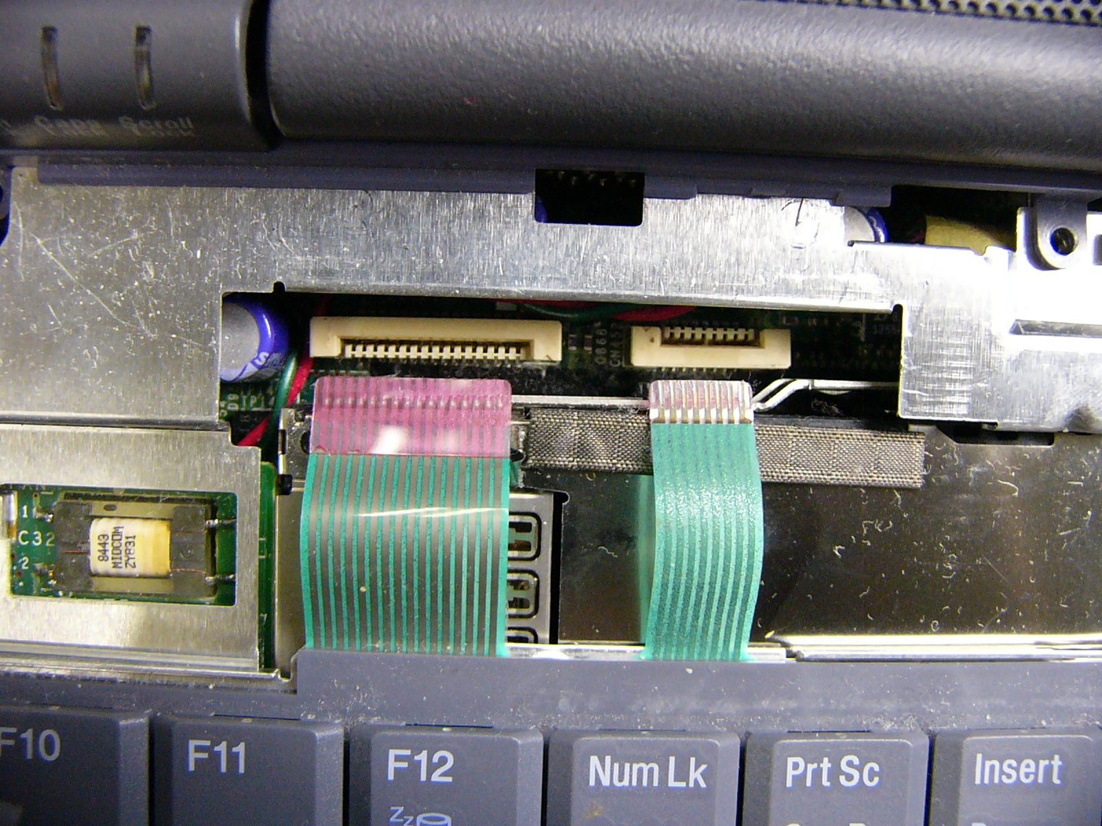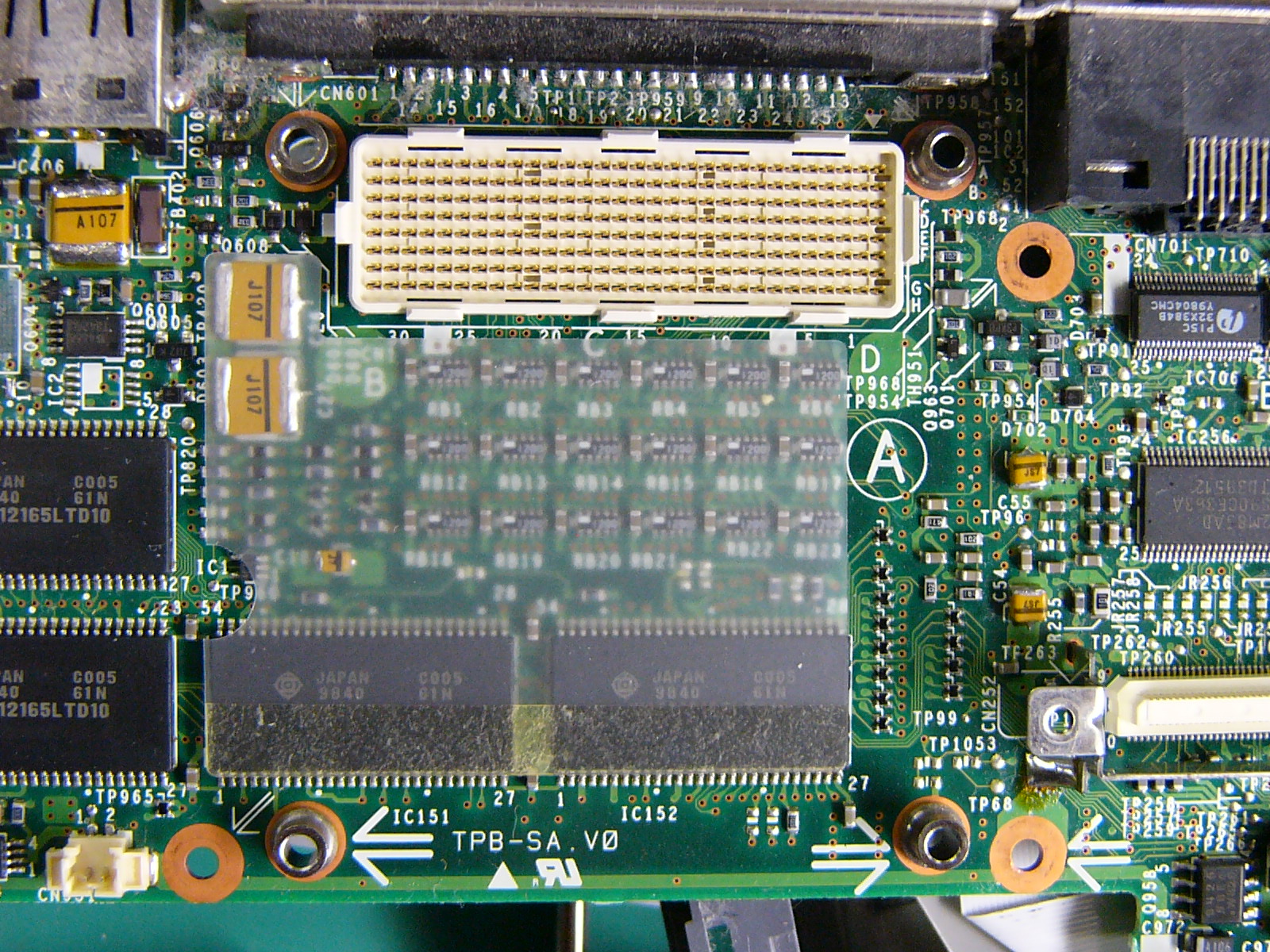 交換前の「起動画面」 「BIOS」設定画面です。 (画面左端に緑の輝線が出ています。) 「システム情報」の表示です。 全体像です。 カードスロットに刺さっているのは 「なな、なんと無線LANカード!!!」 ではアーリマせんか? (いまどき、珍しくもないですね。) 裏面の全体像です。 裏面のメモリスロットと メモリ(ADTEC128MB) です。 ADTECのメモリは、 信頼性も高いのですが 高さがあるため物理的 に利用できない機種が 多かったりします。 裏面全体の画像です。 ここから、見えるねじを すべて外します。 (メモリのほかにチップが 1つ見えますが詳細 不明です。BIOS用?) 裏面のネジをすべて外し 終えたらキーボードの上部 にあるフレーム止めのネジ を外し、キーボードごと フレームを少し手前にずらし ます。 電源スイッチ右にあるような 突起でフレームを固定して ありますので、プラスチックの フレームに無理な力を加えて 外そうとすると破損します。 フレームが外れたところです。まだ、タッチパッドのケーブル が外れていないので無理に 動かしてはいけません。 キーボードのコネクタを2本 外すとキーボードが取れます。 キーボードを取り外してから フレームについているタッチ パッドのケーブルをコネクタ から抜き取ります。 キーボード側のフレームが 取り外せたら、左上部に ファンの付いた金属性の 放熱板(というよりブロック) が見えます。 この下にCPUが隠れてい ます。 ここからは、液晶ディスプレイ を外していきます。 液晶ディスプレイは、ヒンジと 呼ばれる部品で支えられて いるので、ヒンジを固定して いるネジを外します。 ヒンジに組み合わさっている シールド用のアルミ板を 止めているネジ(中央付近 の2本)を外します。 左右両サイドのヒンジ固定 ネジを外し、フレーム上部 左右の止めネジを外すと、 ヒンジを上に引き上げる ことができるようになります。 (ディスプレイのケーブルを 外すまで、引き抜いては いけません。) シールド板を変形させない ように慎重に、丁寧に取り 外します。 シールド板の下にある茶色 のディスプレイケーブルの ネジを外して取り外します。 もう1つ白帯と青帯の入った LED用のケーブルも外します。 本体からディスプレイを 抜き取ると、左上にCPU のクーラーファンとヒート シンクが出てきます。CPUクーラーは3本のネジで 固定された状態です。 CPUファンを外したところ。 これがミニカートリッジです。 CPUのコア部分には熱伝導 ゴムが張り付いていますが 破れないように丁寧にはがして 保管しておきます。 (CPUは、ボルト・ナット止めに なっているため、マザーボード を取り出さなければ交換でき ません。) マザーボード右上隅のネジ とカードスロットの止めネジ およびマザーボード中央部分 の2本のネジ、さらにCPU 左下の止めネジの脇にある マザーボード固定ネジを 外します。 すいません この部分の画像は、 撮っていません。 マザーボードを取り出して 裏面を見ると、メモリスロット 付近に、CPUを止めている ボルト・ナットを確認できます。 ナットを取ってボルトを外すと CPUを取ることができます。 ※ボルトは、ぐらつきを抑える ためか、金属製の支柱に 通してあります。 CPUを外すときも無理に はがすとピンを傷めてしまう ので平均的に少しずつ外し ていきます。 左が元々ついていた233MHz 右が換装用の300MHzです。 「Compaq」のシールが泣かせ ます。 CUPを取り付けるために ボルトの支柱を配置します。あまり神経質になる必要も ありませんが、多少丁寧に 作業しましょう。 CPUをセットするのですが、 ここも慎重に力を加えて いきます。 (無理やり押し込んで支柱が ずれたりするとCPUのコネ クタやピンが破損します。) うまくセットできたら、ボルトと ナットで固定します。 CPU交換が終了したら、今回の 分解目的は達成です。 熱伝導ゴムをCPUコアに貼り付け 分解の逆手順で本体を組み立てます。 ※この時点で、ネジ止めは最小限に とどめておき、起動・動作確認後に 再度組みなおしを行います。 (交換失敗や接続ミスのチェック およびあわてて組み立てること による組み付けミスを防止する ためです。) これが、起動時の画面です。 (BIOSのバックアップ電池も 外したので、内蔵時計が 狂っており、システム設定 をやり直すことになります。) 画面左の緑の輝線は直って いません。(残念:コネクタの 接触不良ではないようだ!)