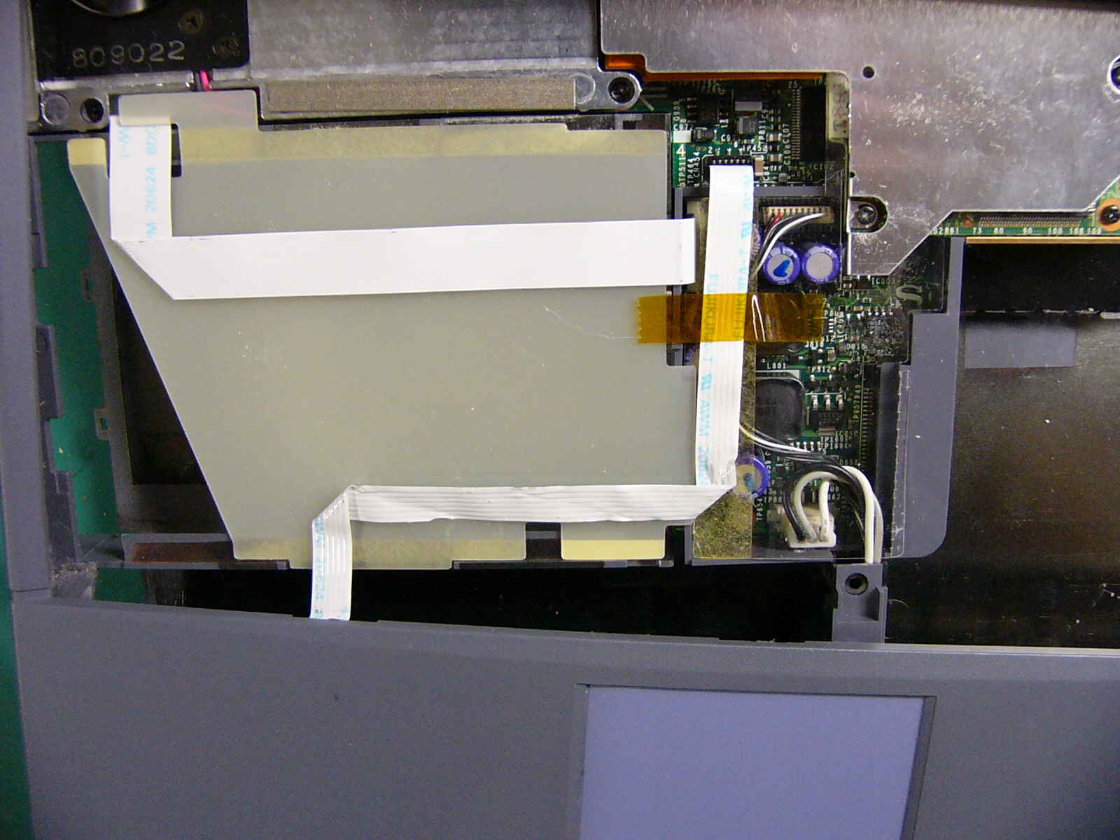 まだ、タッチパッドのケーブル が外れていないので無理に 動かしてはいけません。