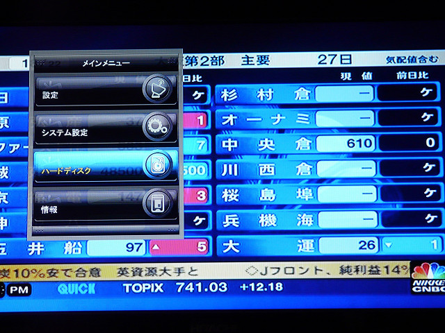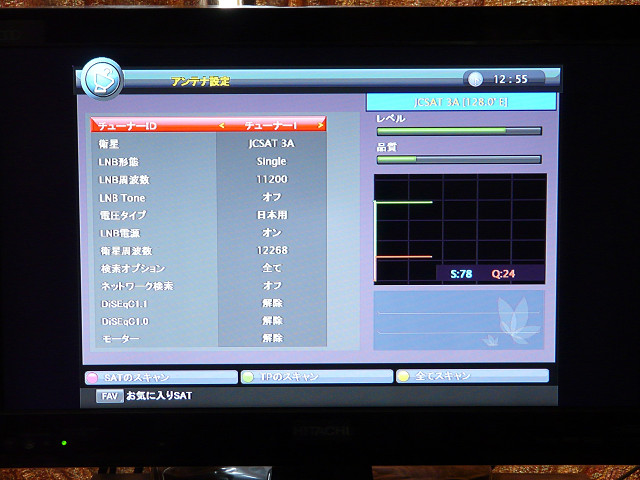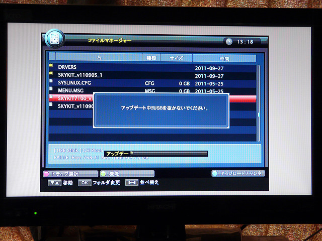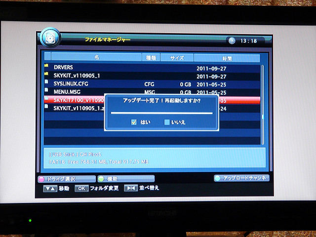 SK11の再起動が行われ、新しいファームウェアで起動するとともに、スカパーの放送が見られるようになります。