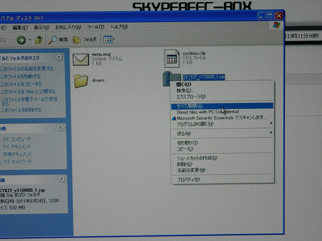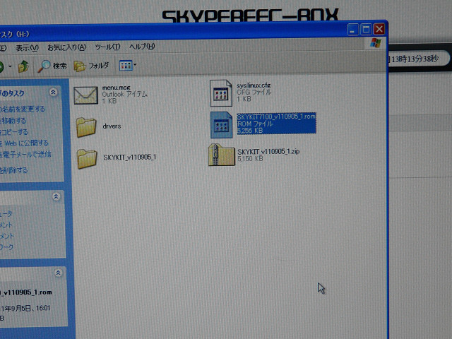 ZIPファイルの展開が終わるとフォルダ「SKYKIT_xxxxxx(xxxxxxは半角英数字)」の中にファームウェアのファイルができています。