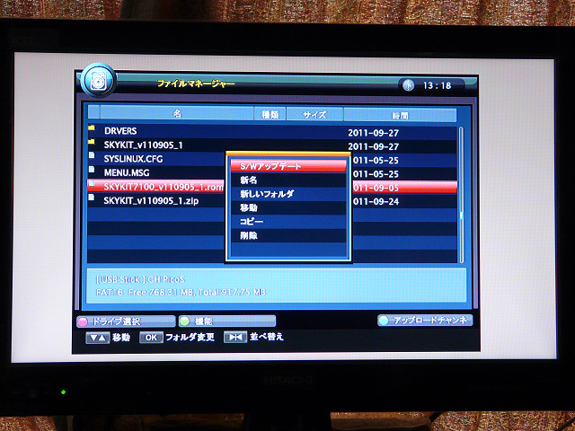 そこで、×某ホームページ×からスカパー対応のファームウェアをUSBフラッシュメモリにダウンロードした後、SK11のUSBコネクタを使ってファームウェアの書き換えを行います。