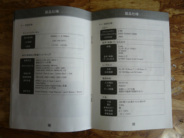 日本語の取扱説明書ですがアンテナやテレビへの接続方法も詳しい説明がなくビデオ機器の知識が無い人にはハードルが高いチューナーと思います。