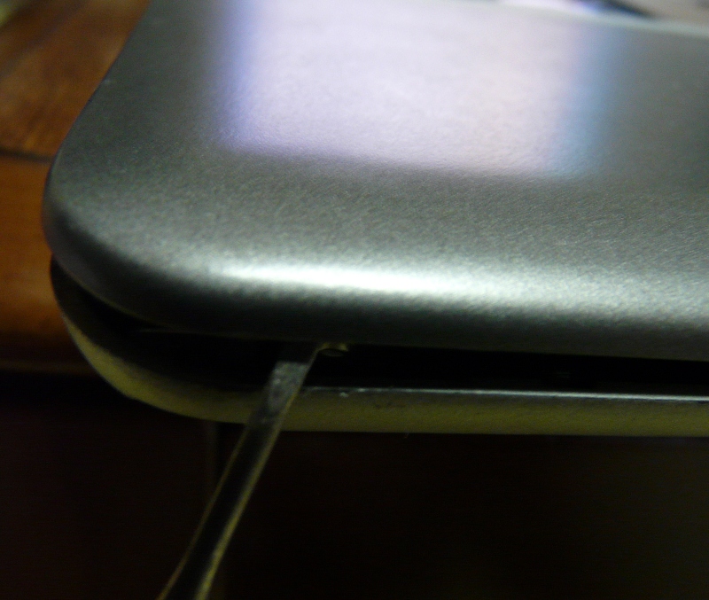 ただし、タッチパッドのケーブルがつながっていますので、いきなり大きく開こうとしてはいけません。